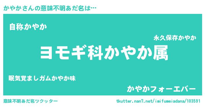| 肩書あだ名 | 『かやか上級大将』『かやか総統』 |