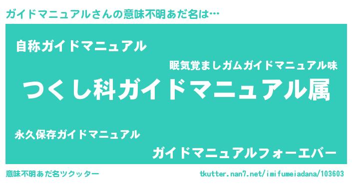 | 料理風あだ名 | 『ガイドマニュアルとほうれんそうの和風グラタン』 |
