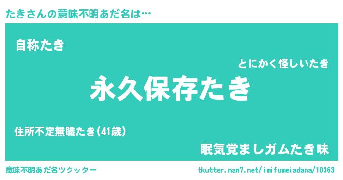 | ポケモン風あだ名 | 『ゼニタキ』『メロタッキ』『ヒタキ』 |