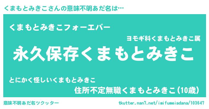 | 女子向けラノベタイトル風あだ名 | 『くまもとみきこの契約王妃』 |