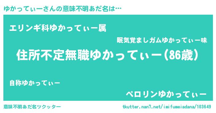 | 男性向けラノベタイトル風あだ名 | 『この素晴らしい世界にゆかってぃーを!』 |
