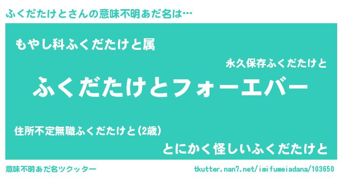 | 女子向けラノベタイトル風あだ名 | 『ふくだたけとの雑貨屋さん』 |