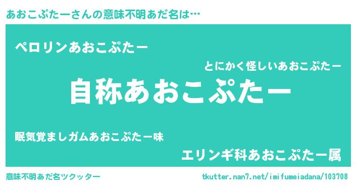 | 肩書あだ名 | 『あおこぷたー総統』『あおこぷたー中将』 |