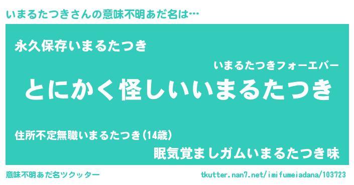 | 欧米人風あだ名 | 『ウサインいまるたつき』 |