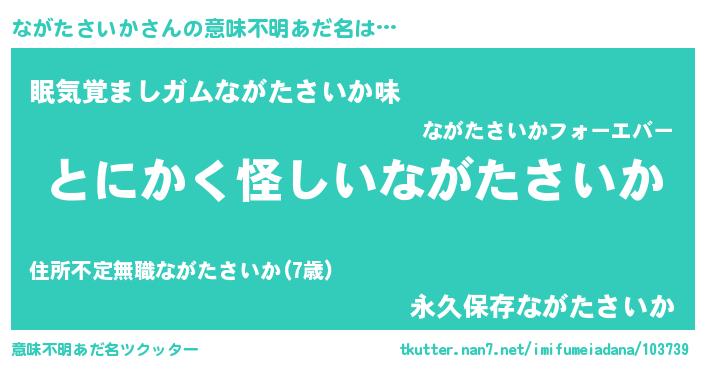 | 欧米人風あだ名 | 『ウサインながたさいか』 |