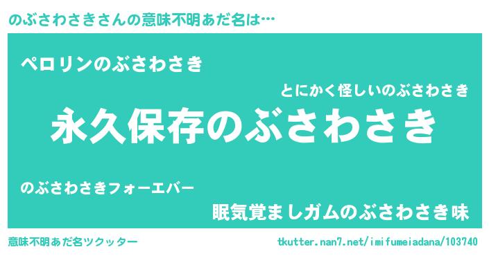 | 胡散臭い通販商品みたいなあだ名 | 『絶対に幸福をもたらす健康食品…その名も「のぶさわさき」』 |