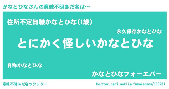 | 男性向けラノベタイトル風あだ名 | 『かなとひなの嫁は女の子じゃないと思った?』 |