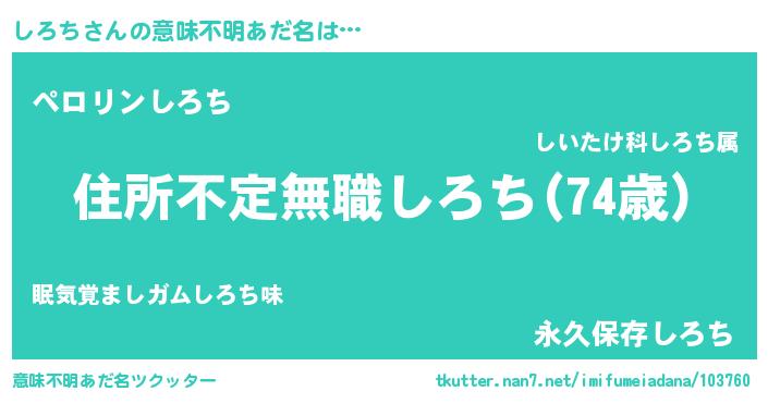 | 男性向けラノベタイトル風あだ名 | 『この素晴らしい世界にしろちを!』 |