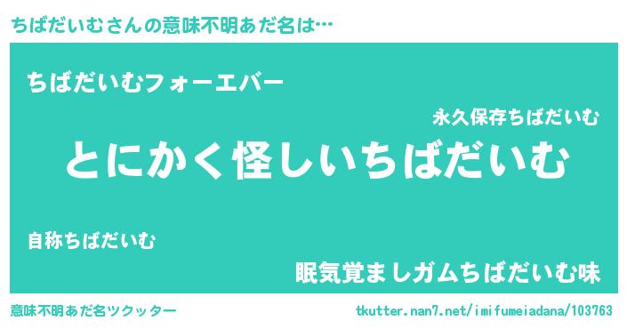 | 女子向けラノベタイトル風あだ名 | 『ちばだいむの卵を拾いまして』 |