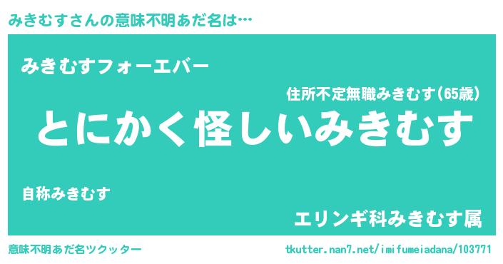 | ポケモン風あだ名 | 『ミキゴンZ』『ヒミキムス』 |