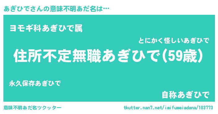 | 男性向けラノベタイトル風あだ名 | 『この素晴らしい世界にあぎひでを!』 |
