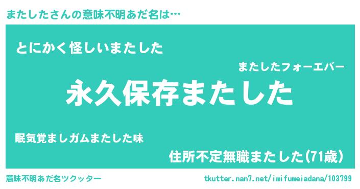 | 男性向けラノベタイトル風あだ名 | 『またしたという概念が存在しない退屈な世界 』 |