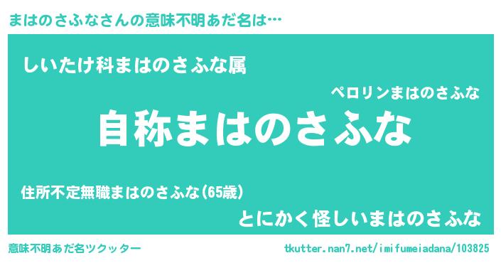 | 男性向けラノベタイトル風あだ名 | 『Re:まはのさふなから始める異世界生活』 |