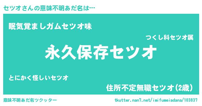 | 女子向けラノベタイトル風あだ名 | 『異世界で失敗しない100のセツオ』 |