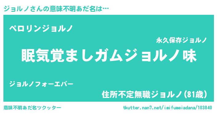 | ヘコむあだ名 | 『ジョもー』『ジョルノ(笑)』 |
