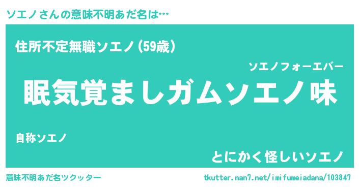 | ヒーロー風カッコイイあだ名 | 『正義の使者ソエノ』『仮面ソエダー』 |