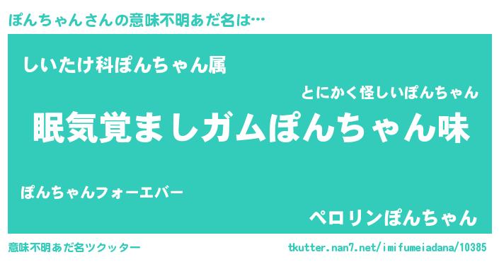 | ヒーロー風カッコイイあだ名 | 『慈愛の使者ぽんちゃん』『暗黒騎士ポン』 |
