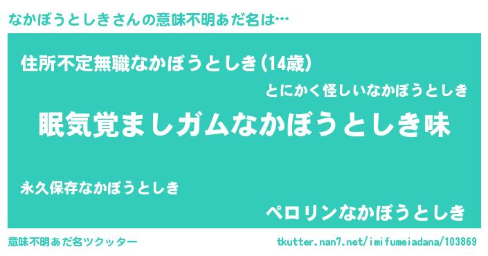 | 女子向けラノベタイトル風あだ名 | 『なかぼうとしき恋絵巻』 |