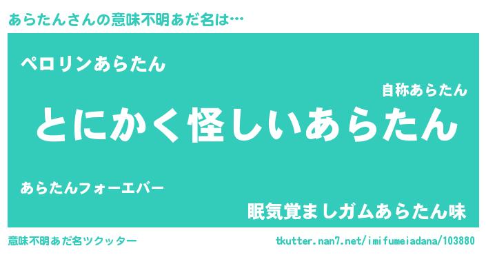 | 胡散臭い通販商品みたいなあだ名 | 『全米が絶賛したサプリメント…その名も「あらたん」』 |
