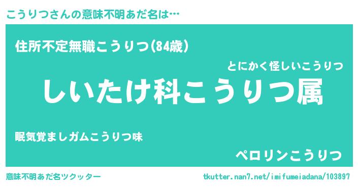 | 男性向けラノベタイトル風あだ名 | 『コウリツスレイヤー』『こうりつの憂鬱』 |