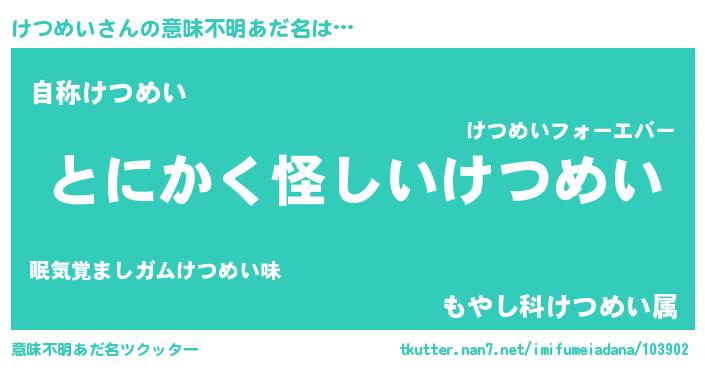 | 女子向けラノベタイトル風あだ名 | 『けつめい様がみてる』『闇のけつめい』 |