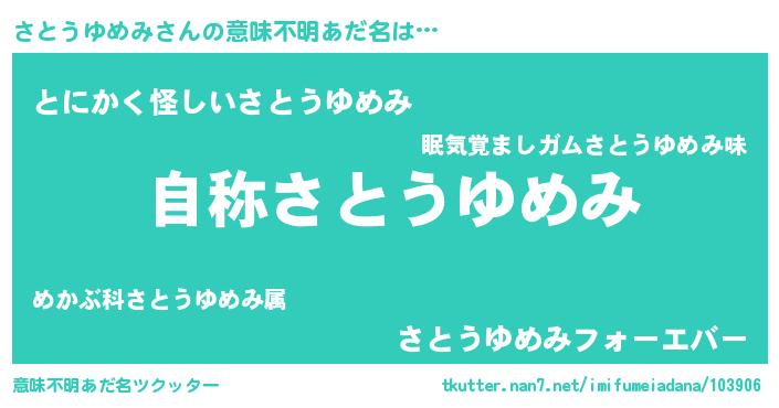 | 女子向けラノベタイトル風あだ名 | 『さとうゆめみストレイドッグス』 |