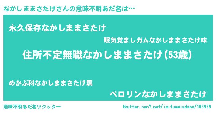 | 男性向けラノベタイトル風あだ名 | 『この素晴らしい世界になかしままさたけを!』 |