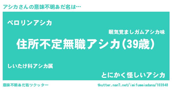 | ポケモン風あだ名 | 『アシゴンZ』『アーシイ』『ヒアシカ』 |