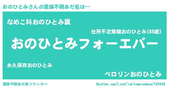 | ファンタジー風あだ名 | 『エターナルオノヒトミー』『オノフェル』 |