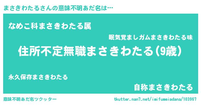 | 男性向けラノベタイトル風あだ名 | 『この素晴らしい世界にまさきわたるを!』 |
