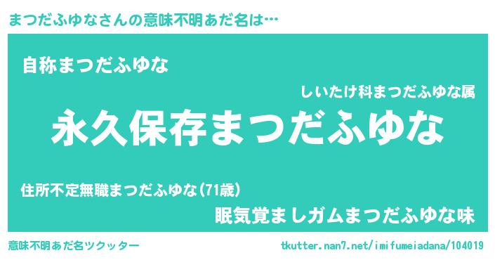 | 胡散臭い通販商品みたいなあだ名 | 『絶対に幸福をもたらす水素水…その名も「まつだふゆな」』 |