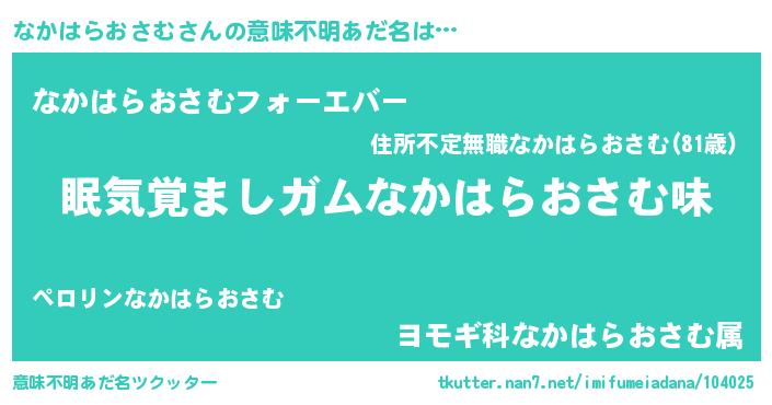 | 胡散臭い通販商品みたいなあだ名 | 『モンドセレクションを受賞した隕石のかけら…その名も「なかはらおさむ」』 |