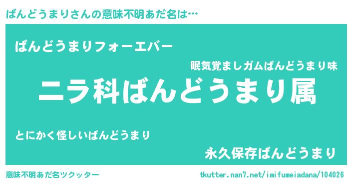 | 胡散臭い通販商品みたいなあだ名 | 『運命の人と巡り会える高級そうな壺…その名も「ばんどうまり」』 |