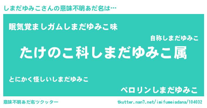 | ヒーロー風カッコイイあだ名 | 『愛の使者しまだゆみこ』『幻影騎士シマ』 |