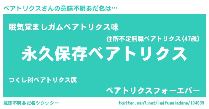| 胡散臭い通販商品みたいなあだ名 | 『来世でも幸せになれる健康食品…その名も「ベアトリクス」』 |