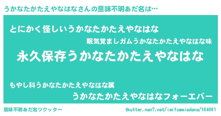 | ヘコむあだ名 | 『うかなたかたえやなはな(小並感)』 |