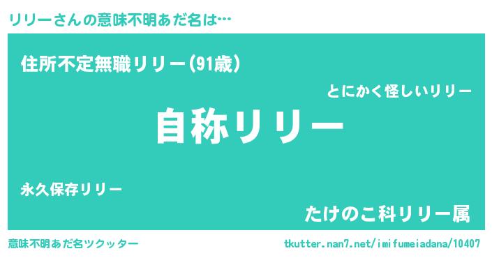 | 男性向けラノベタイトル風あだ名 | 『Re:リリーから始める異世界生活』 |