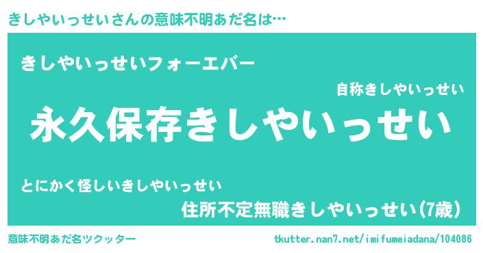 | 胡散臭い通販商品みたいなあだ名 | 『前代未聞の健康食品…その名も「きしやいっせい」』 |