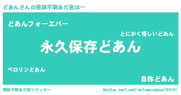 | ファンタジー風あだ名 | 『ドアディッシュ』『エターナルドアンー』 |