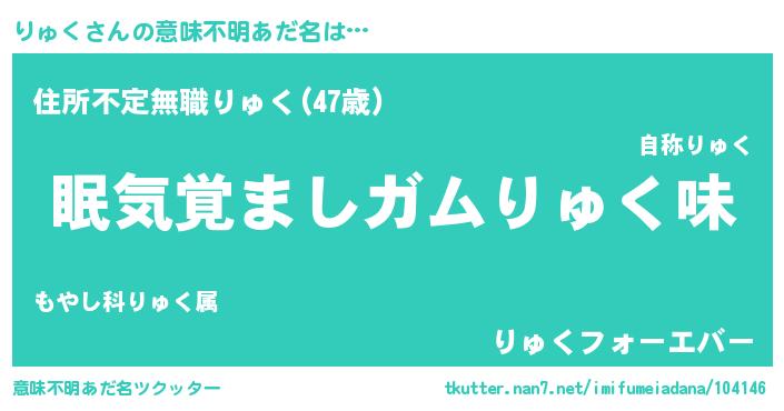 | ヒーロー風カッコイイあだ名 | 『慈愛の使者りゅく』『仮面リュダー』 |