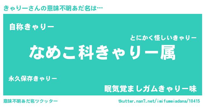 | 男性向けラノベタイトル風あだ名 | 『きゃりーに滅ぼされるだけの簡単なお仕事です』 |