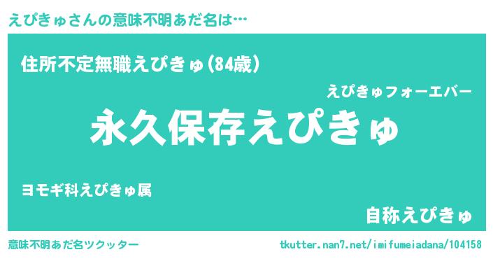 | 女子向けラノベタイトル風あだ名 | 『えぴきゅの契約王妃』『闇のえぴきゅ』 |