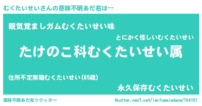 | ヘコむあだ名 | 『むくたいせい(震え声)』『むくお』 |