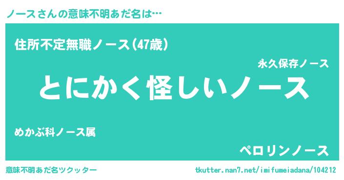 | 自動車の名前っぽいあだ名 | 『ノルトーパン』『ノウディ』 |