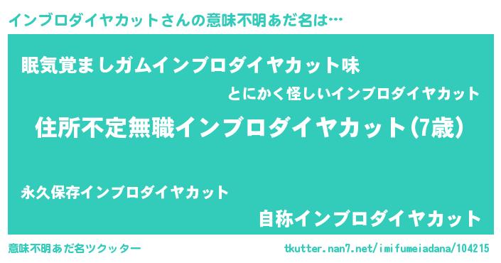 | 男性向けラノベタイトル風あだ名 | 『この素晴らしい世界にインブロダイヤカットを!』 |