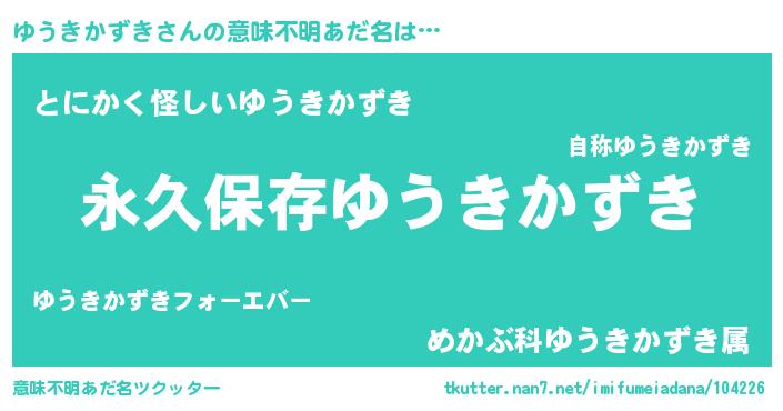 | 男性向けラノベタイトル風あだ名 | 『ゆうきかずきという概念が存在しない退屈な世界 』 |