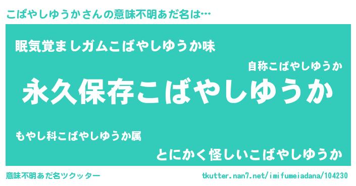 | 胡散臭い通販商品みたいなあだ名 | 『前代未聞の健康食品…その名も「こばやしゆうか」』 |