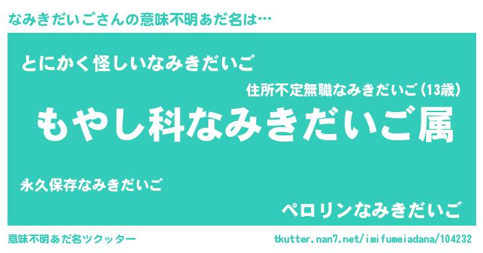 | 胡散臭い通販商品みたいなあだ名 | 『伝統あるペンダント…その名も「なみきだいご」』 |