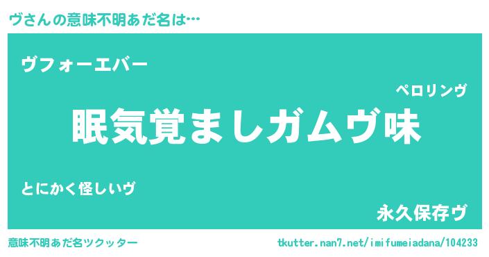 | 男性向けラノベタイトル風あだ名 | 『ノーゲーム・ノーヴ』『ヴの憂鬱』 |