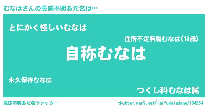 | 男性向けラノベタイトル風あだ名 | 『むなはに滅ぼされるだけの簡単なお仕事です』 |